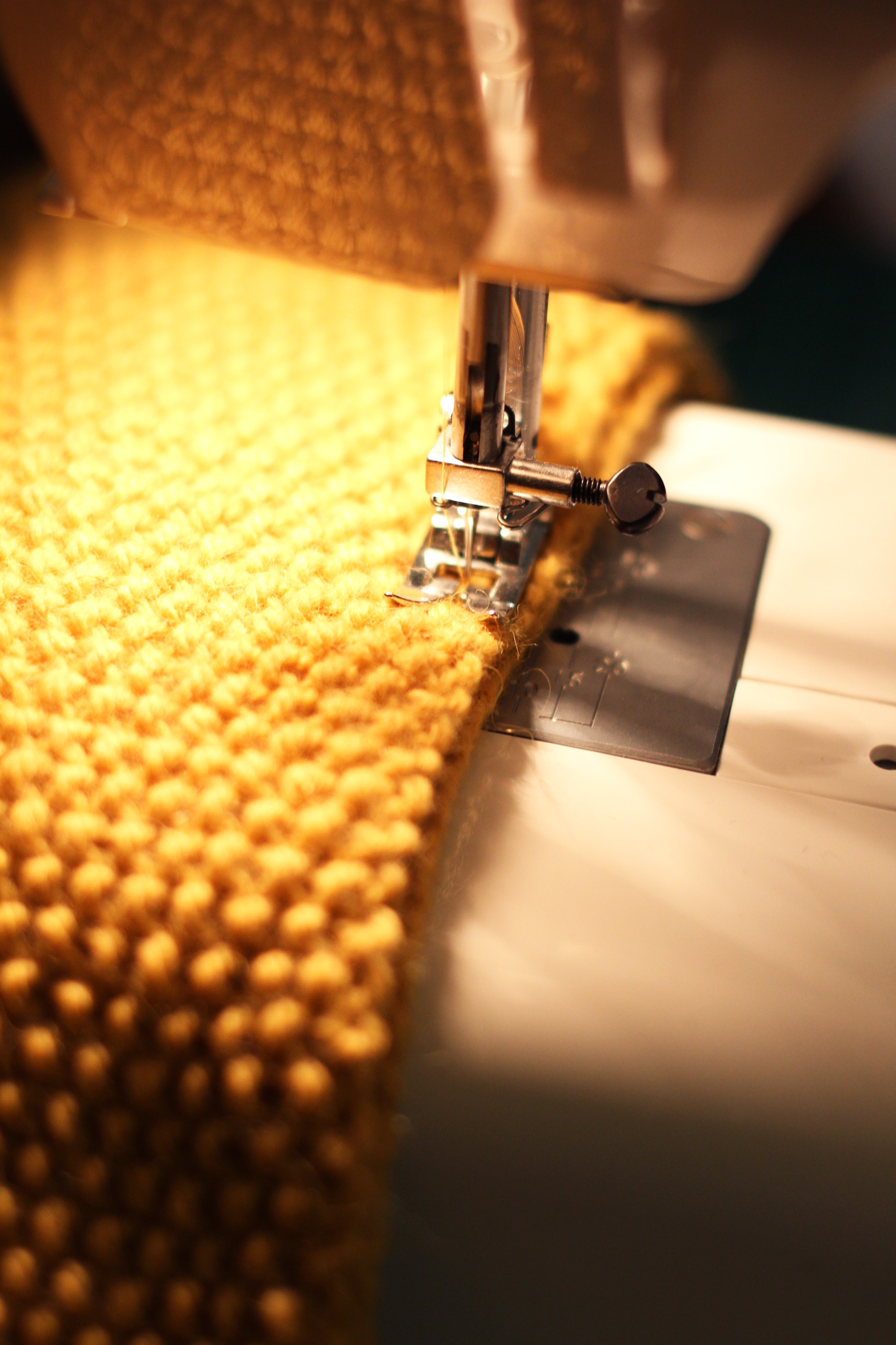 Nå skal vi sy sammen puten. Brett arbeidet og sy ytterkantene (40cm) sammen med symaskin. Sy gjerne sammen 10 cm på hver side på langsiden, men ikke hele slik at du får vrengt trekket og fylt puten. Når du har gjort dette setter du trekket over en pute og syr pent igjen åpningen.