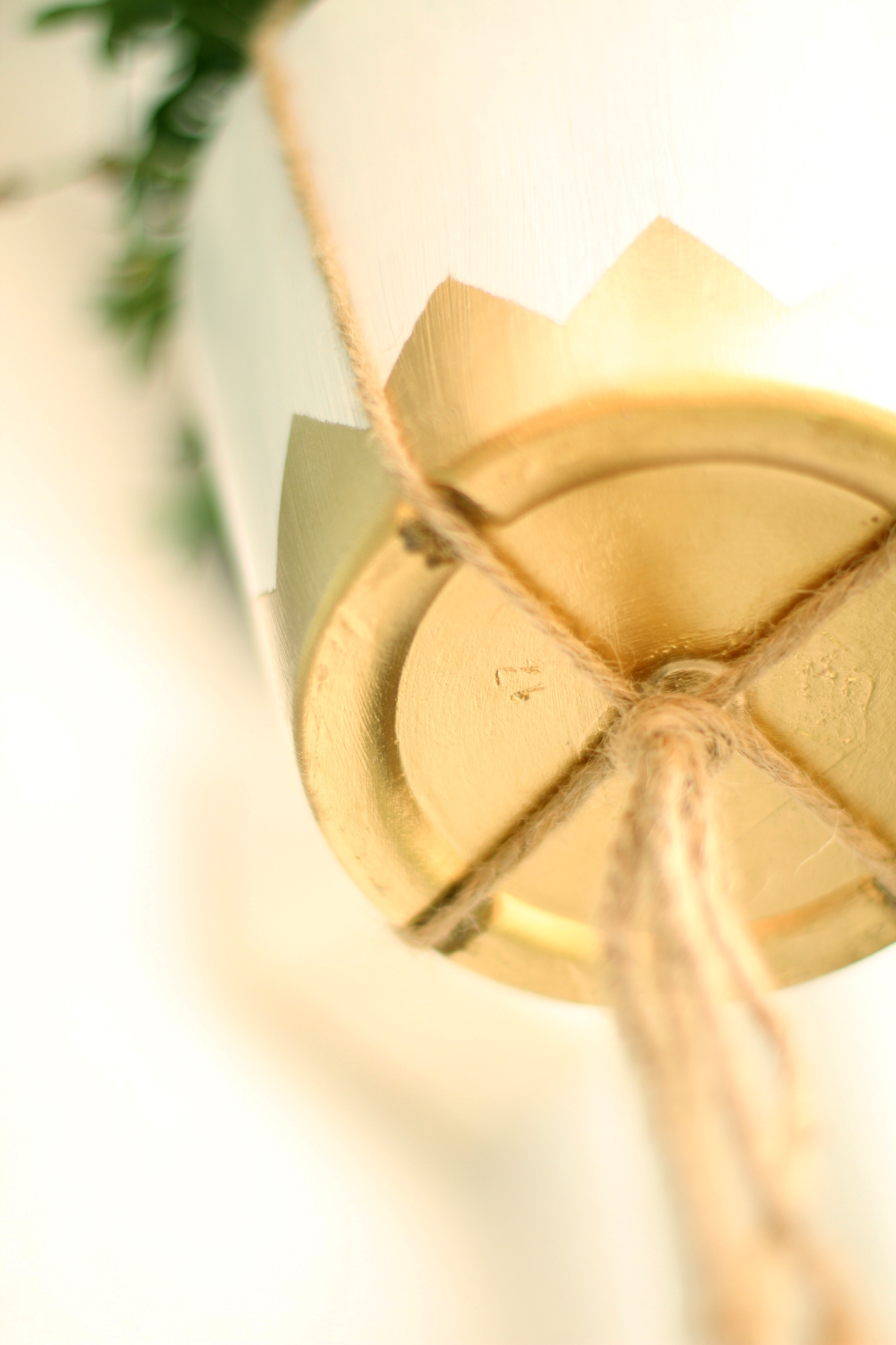 Det første jeg gjorde var å male 2 strøk med hvitmaling på alle tre blomsterpottene. Pottene jeg brukte var fra IKEA, og var veldig fine for de har allerede 4 spor under som gjør det lettere å få festet tauet. Når malingen tørket tok jeg frem maskeringsteipen og teipet opp de mønstrene jeg ønsket med gullakk. Jeg valgte å ha tre forskjellige mønstre, men det er like fint med samme på alle pottene.