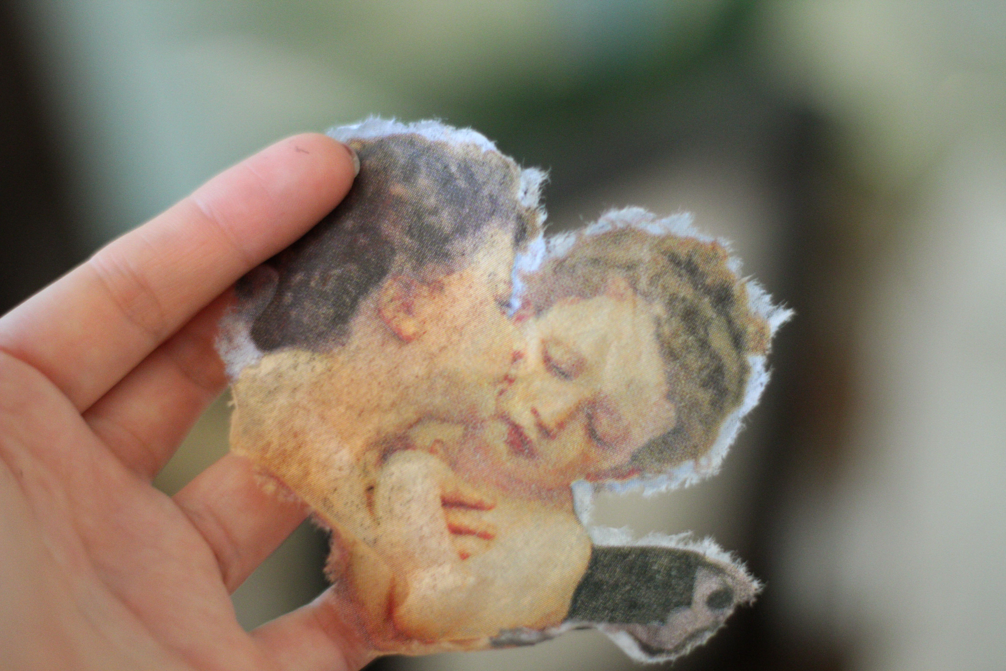 3. Riv forsiktig ut motivet ut av servietten. Servietten har ofte flere lag med tynne papirark, pass derfor på å fjerne disse slik at du står bare igjen med det arket med selve trykket på.